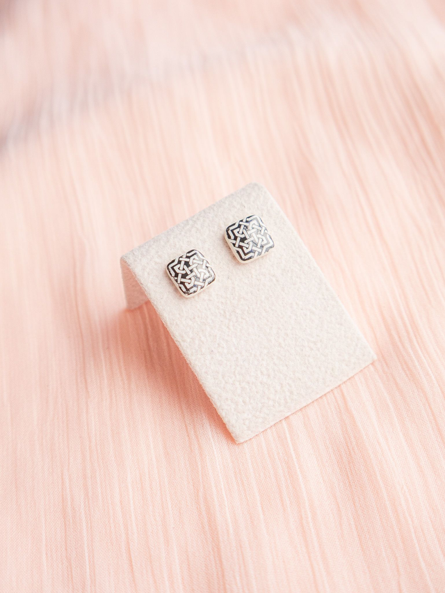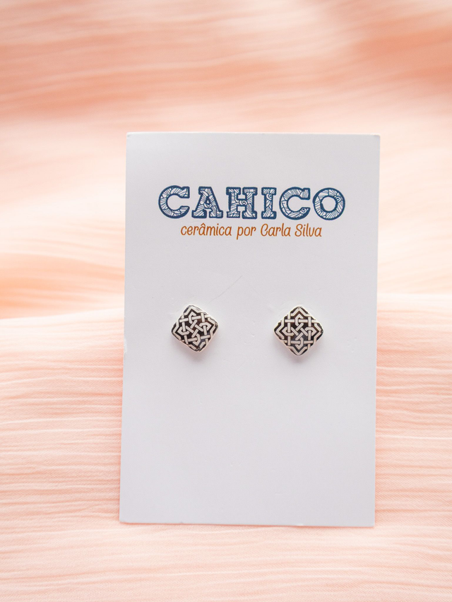 A delicate handmade porcelain square 8mm, stamped with a pattern inspired by Lisbon’s iconic street cobblestone.