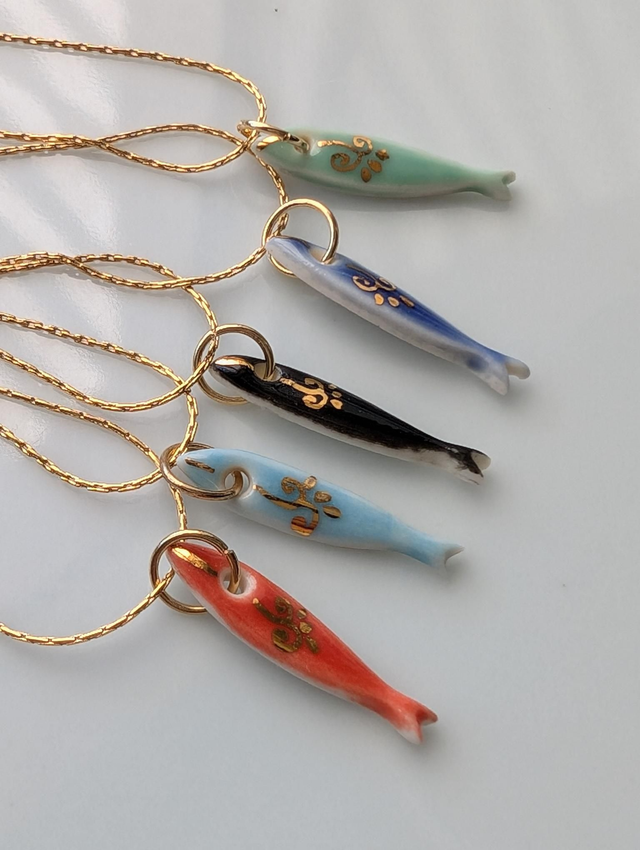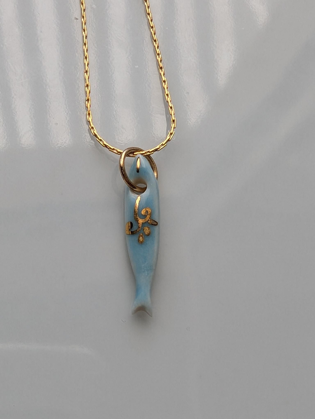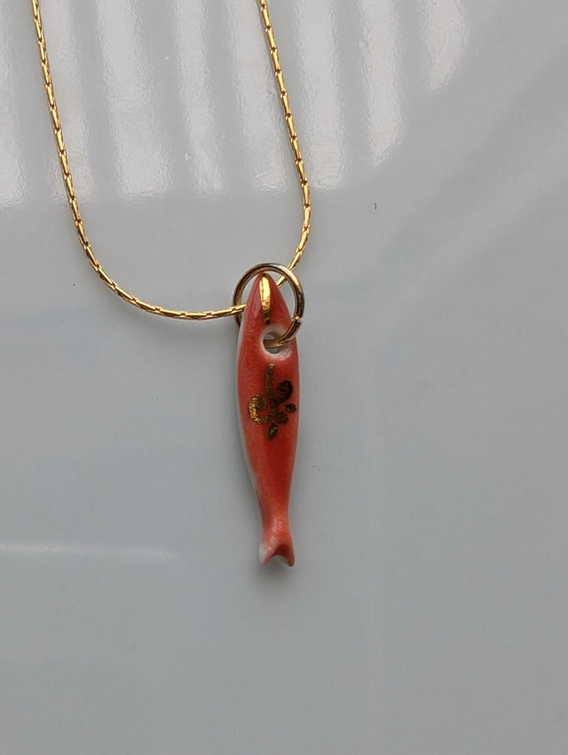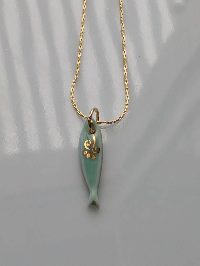 Peça de porcelana feita à mão, com 15mm, vidrado colorido e pintura manual com ouro líquido de 12 quilates.