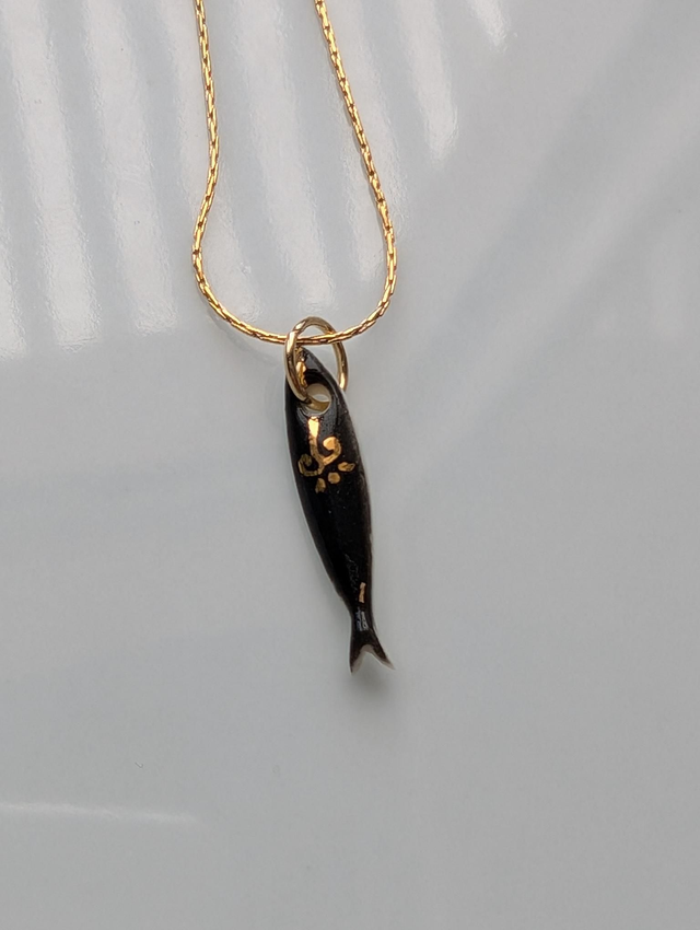 Handmade porcelain piece, 15mm in size, with colorful glaze and hand-painted 12k liquid gold details.